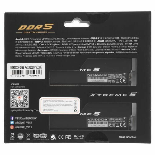 Купить Модуль памяти VIPER XTREME 32GB DDR5-7600 PVXR532G76C36K,CL36, 1.45V K2*16GB RGB PATRIOT