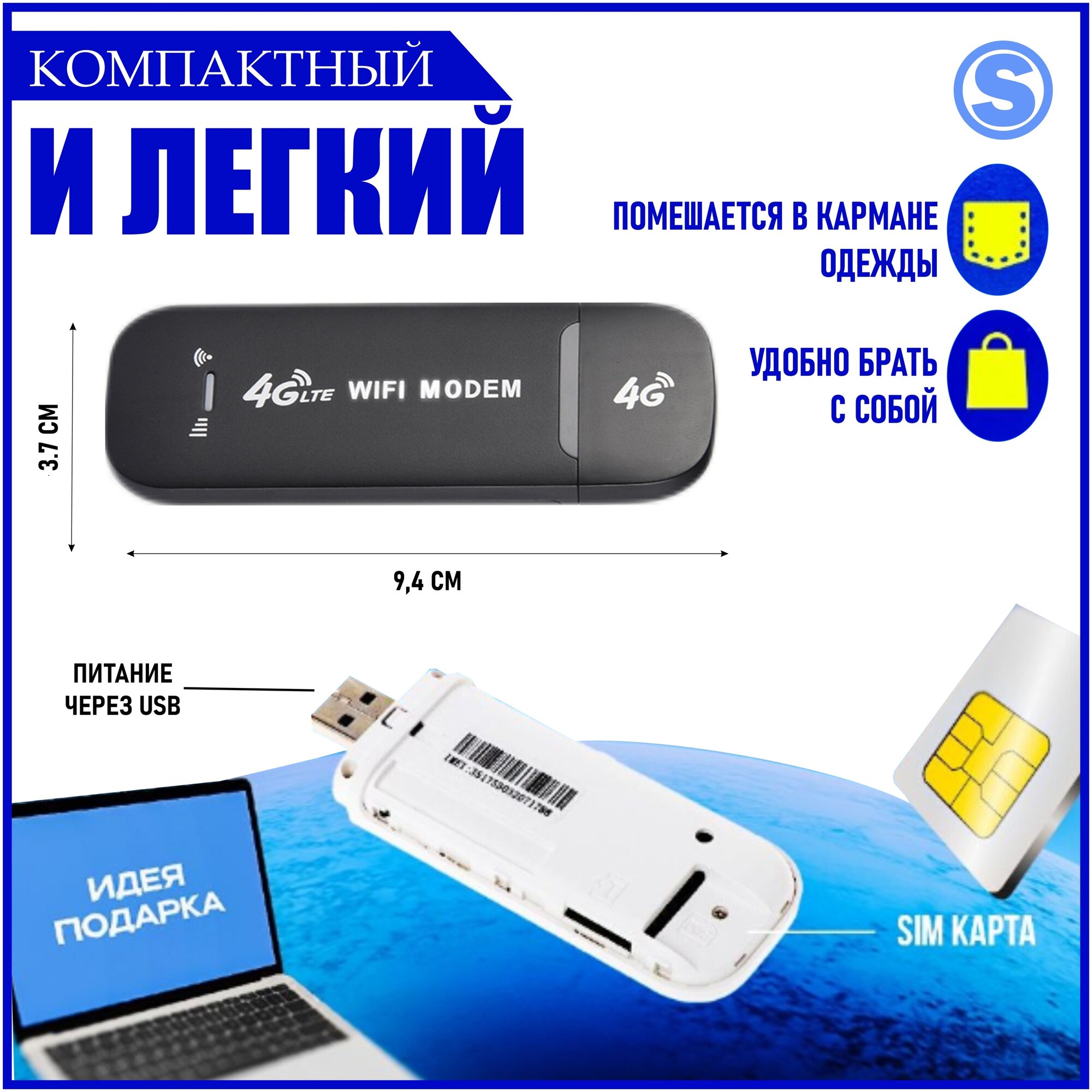| Дополнительная информация | Вставьте модем в ноутбук, компьютер, power bank или любой другой USB источник питания. |