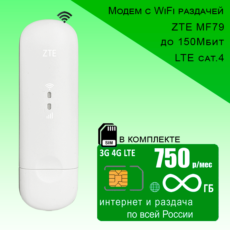 Комплект Модем ZTE MF79U + сим карта с безлимитным интернетом и раздачей за 750р/мес.