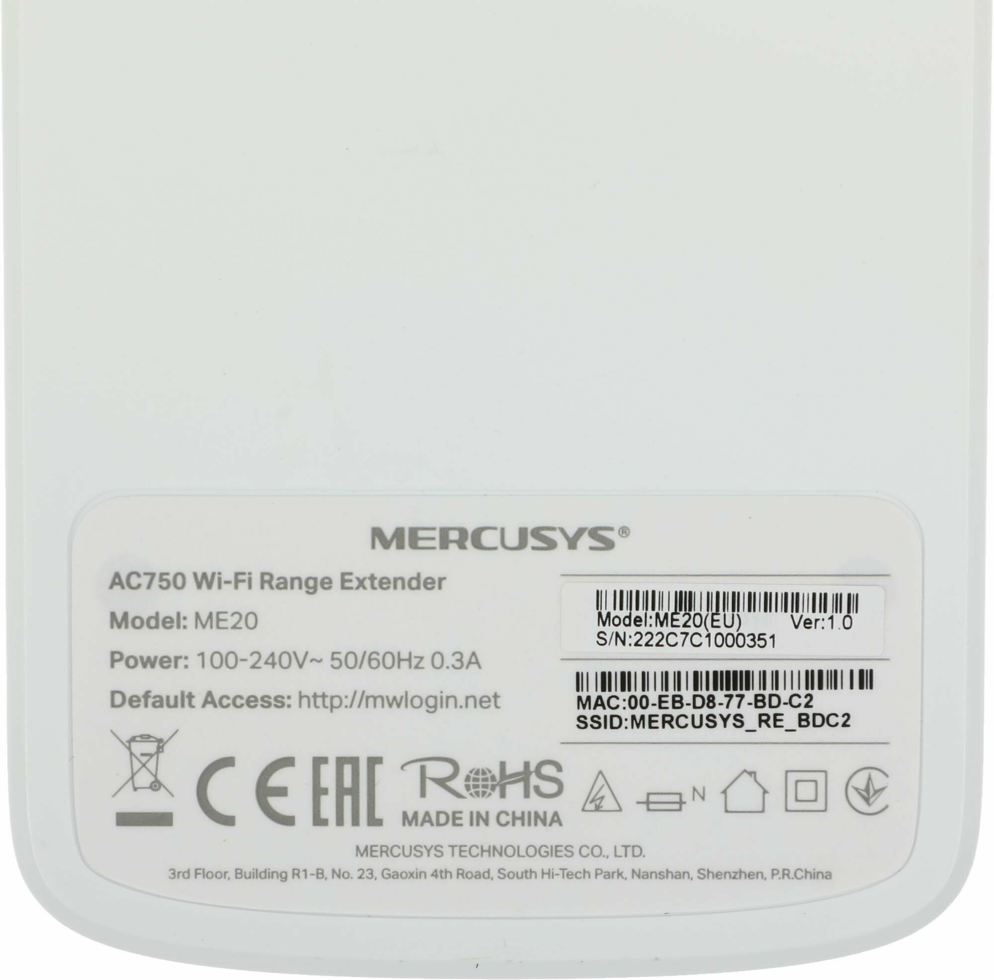 Повторитель беспроводного сигнала Mercusys ME20 AC750 10/100BASE-TX белый