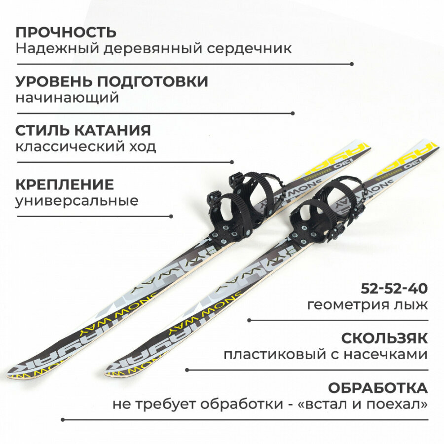 Детские лыжи деревянные с универсальными креплениями креплениями, 150 см / Комплект лыж для детей ростом 125-135 см
