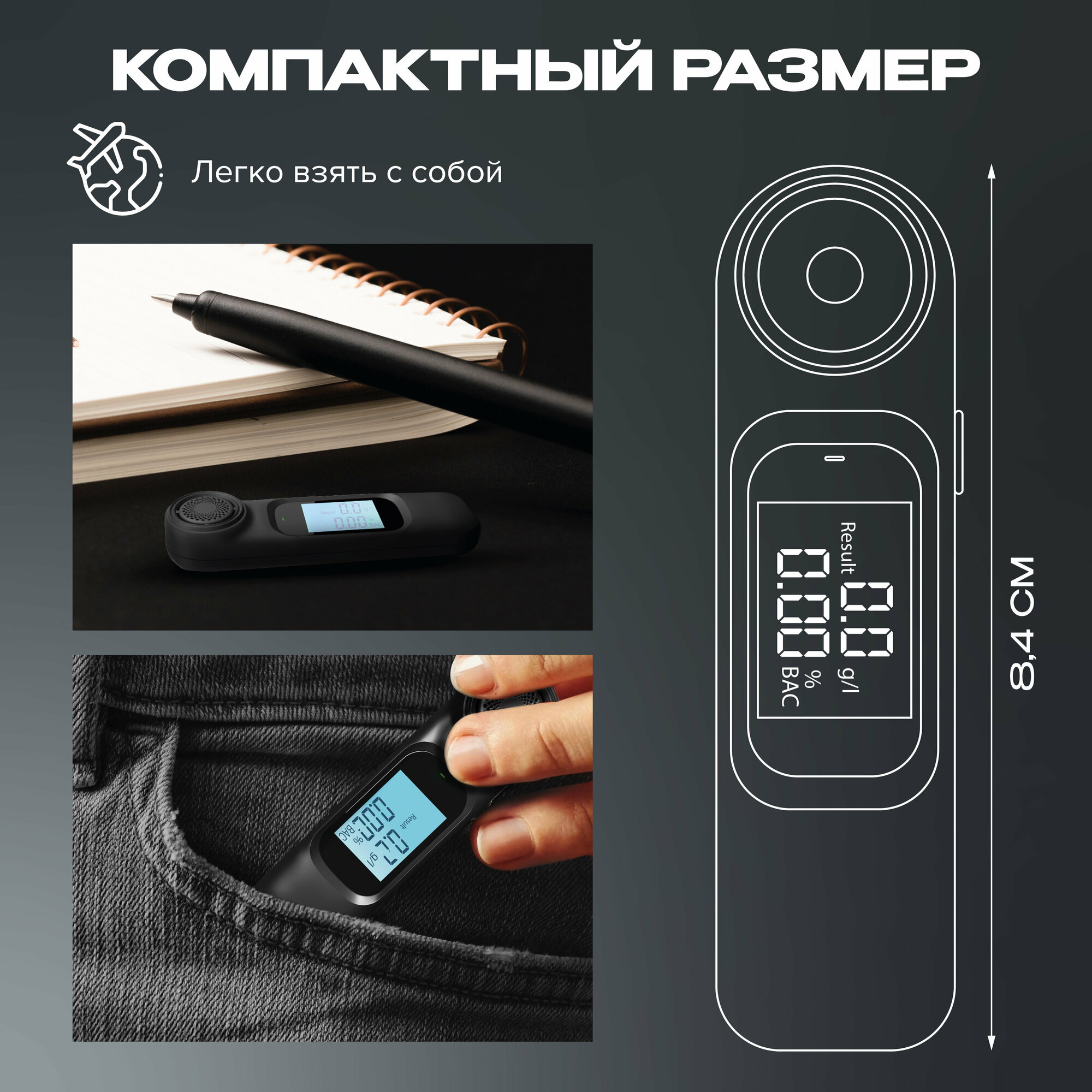 удобный и компактный прибо для измерения алко в крови, быстро и четко