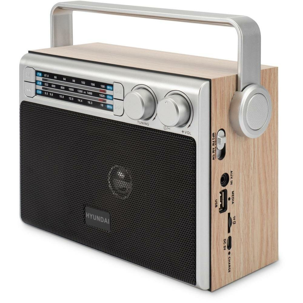 Радиоприемник Hyundai настольный коричневый USB SD/microSD интересное: