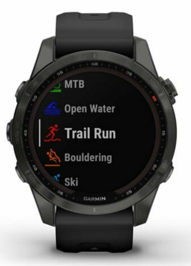 Часы Garmin Fenix 7s Sapphire Solar титановый угольно-серый DLC с силиконовым ремешком, 010-02539-25