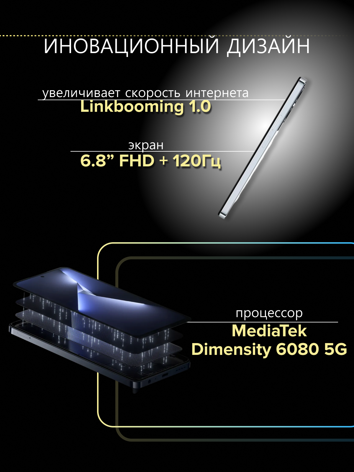 СохранитьСотовый телефон Tecno Pova 5 Pro 5G 8/256Gb LH8n Silver Fantasy интересное: