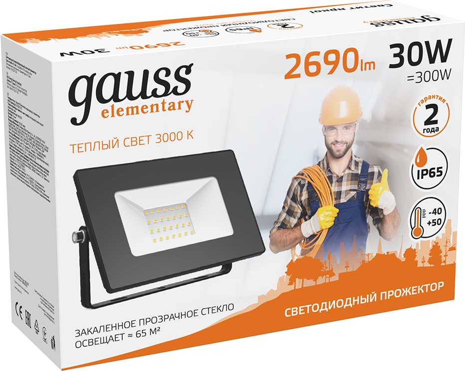 Прожектор LED 30W IP65 3000К черный Gauss Elementary интересное: