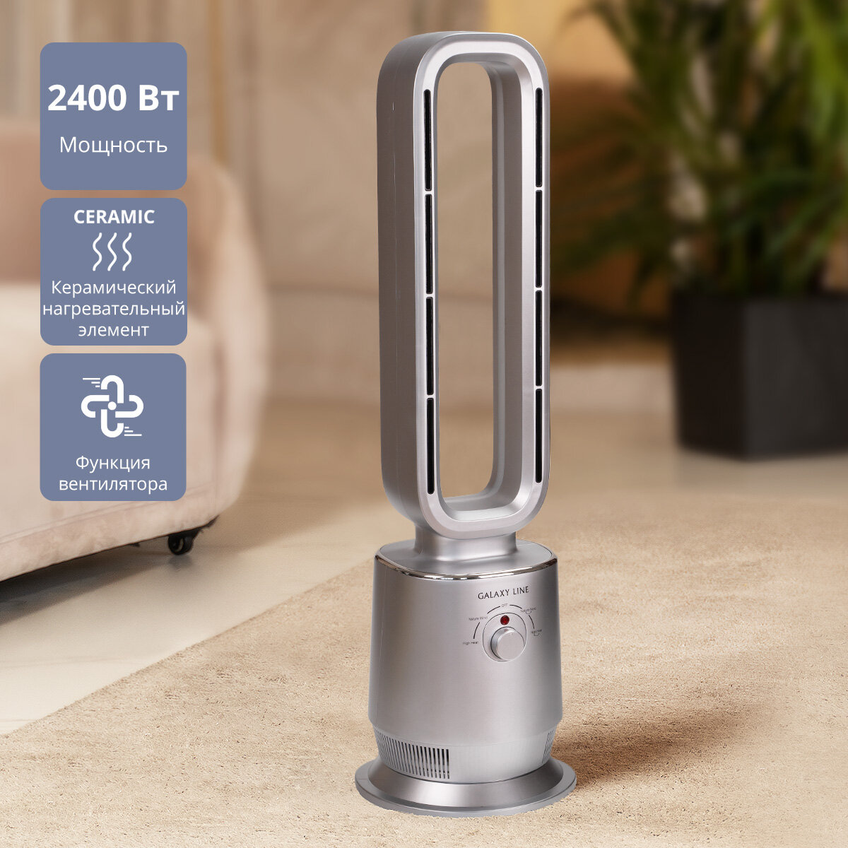 Тепловентилятор Galaxy LINE GL 8179, 2400 Вт, керамический, 2 режима, серебристый
