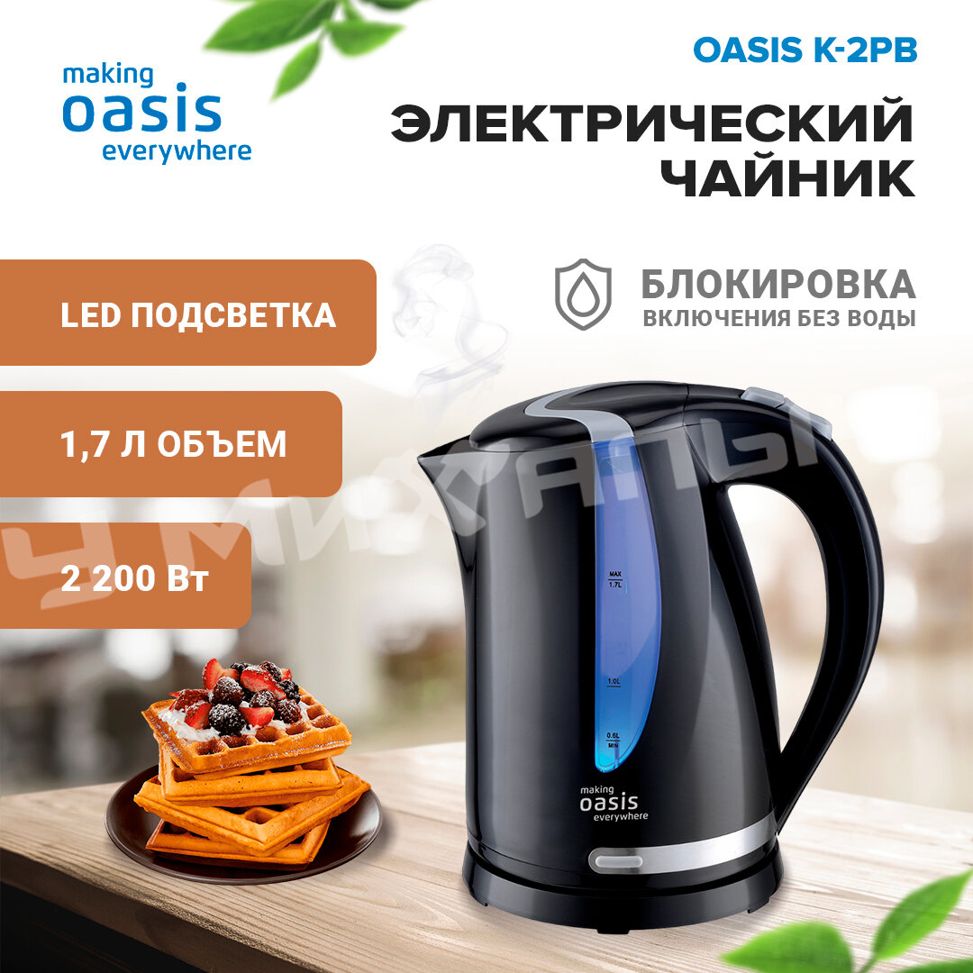 Чайник электрический OASIS K-2PW черный 2200Вт, 1,7 л.
