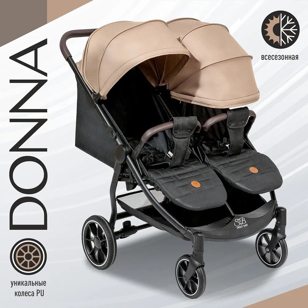 Прогулочная коляска для двойни Sweet Baby Donna, цвет Beige