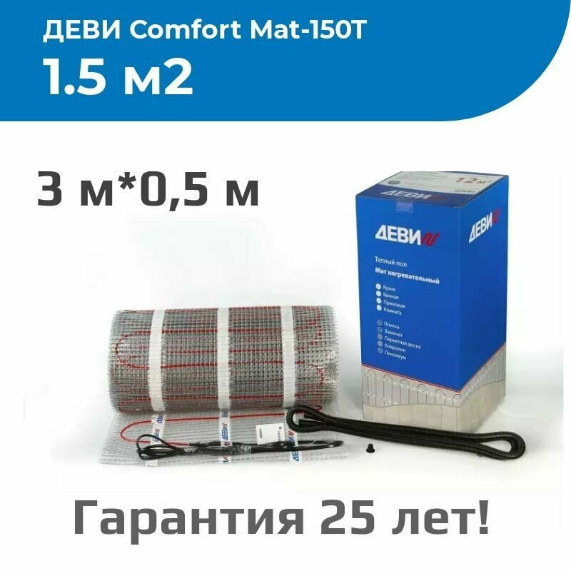 Теплый пол деви Comfort Mat-150T, 225 Вт, 230 В 1,5 м2 (нагревательный мат)