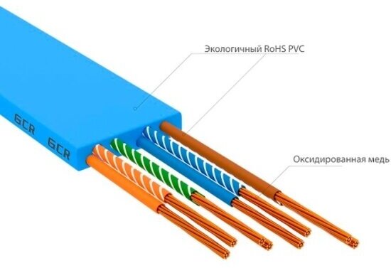 Патч-корд GCR Prof плоский прямой 2.0m, UTP медь кат.6, синий, 30 Awg, ethernet high speed 10 Гбит/с