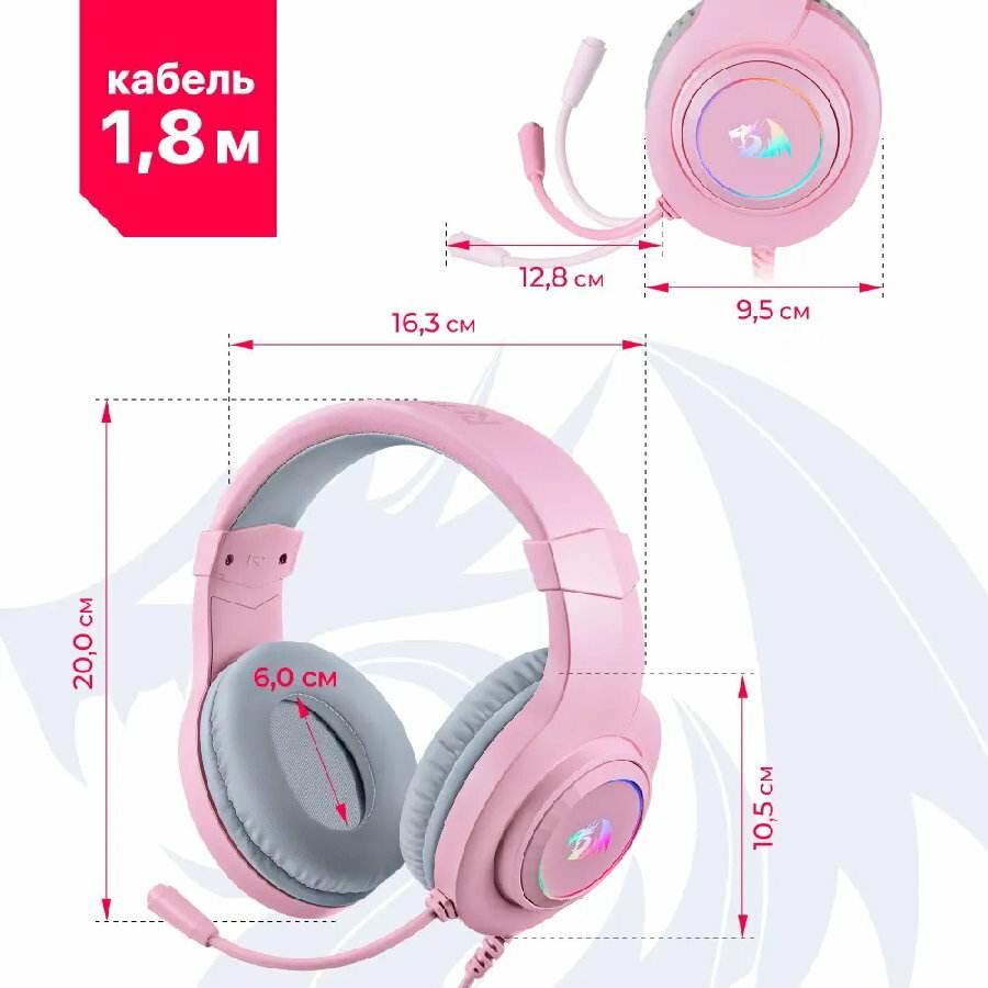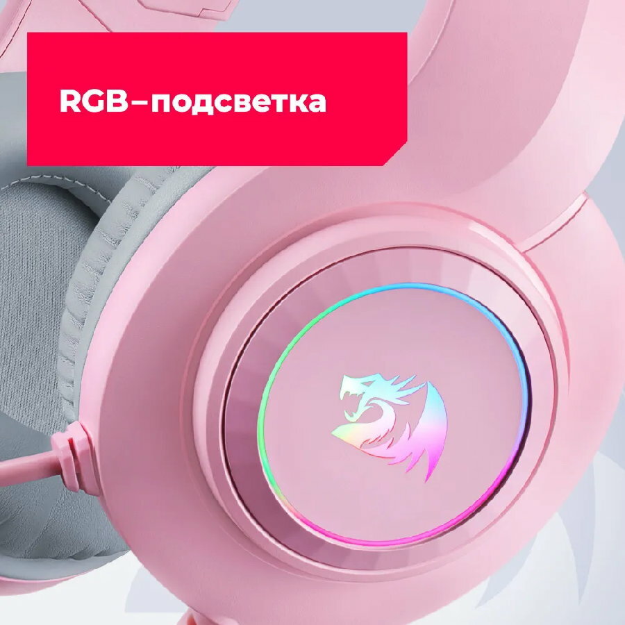 Купить Наушники Redragon Hylas игровые, с микрофоном, USB, подсветка, розовый