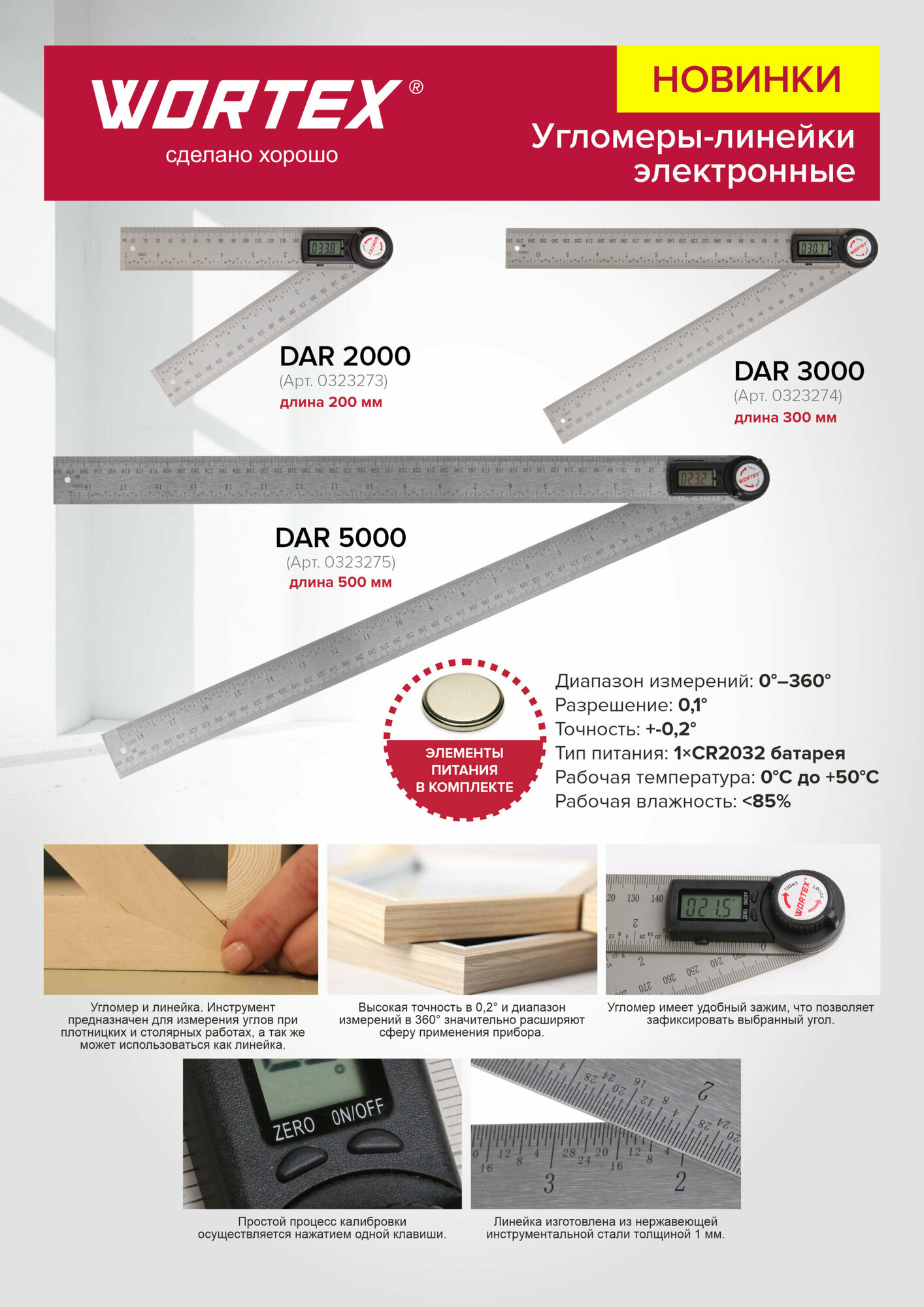 Угломер-линейка электронный WORTEX DAR 5000 в кор. +-0.2°, 500 мм (0323275) интересное: