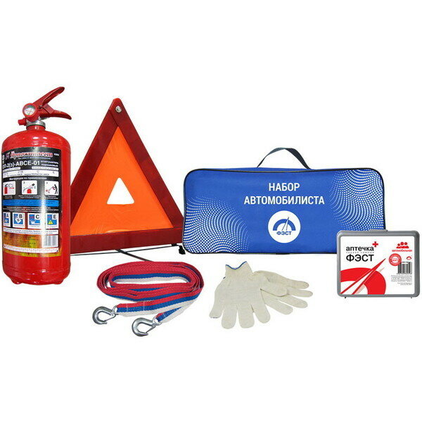 ФЭСТ 1503 Набор автомобилиста (огнетушитель ОП-2,аптечка,знак,трос 3.5т,перчатки) "Универсал - 2(Н)" ФЭСТ