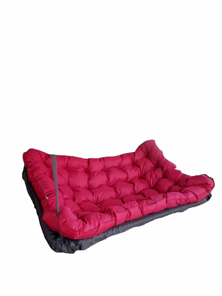 Подвесные качели, качели садовые, диван 180*100, качели для дачи, уличные качели тёмно-серый с бордовой подушкой