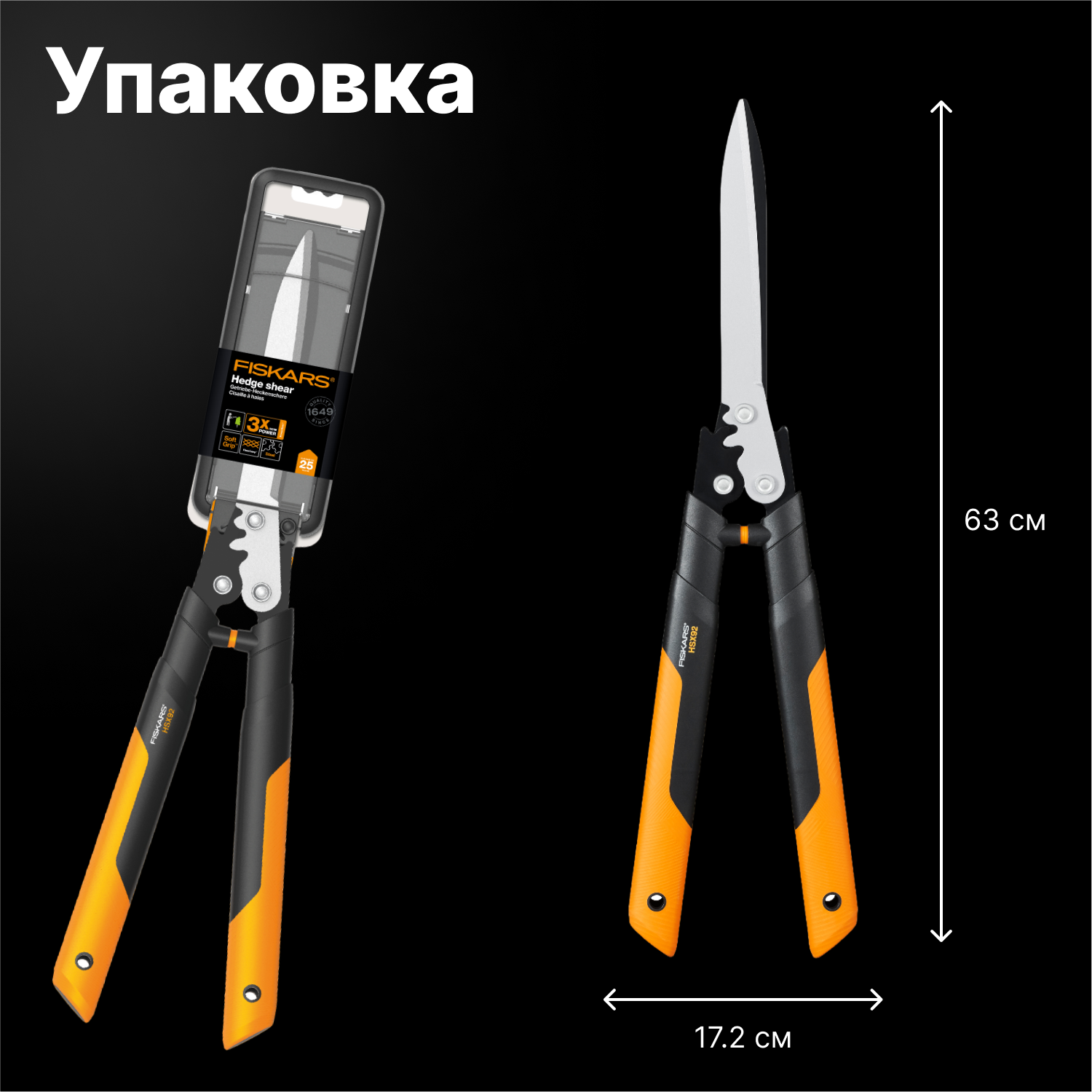 Ножницы для живой изгороди садовые HSX92 FISKARS PowerGear (1023631) кусторез, секатор для кустов, травы, цветов, веток