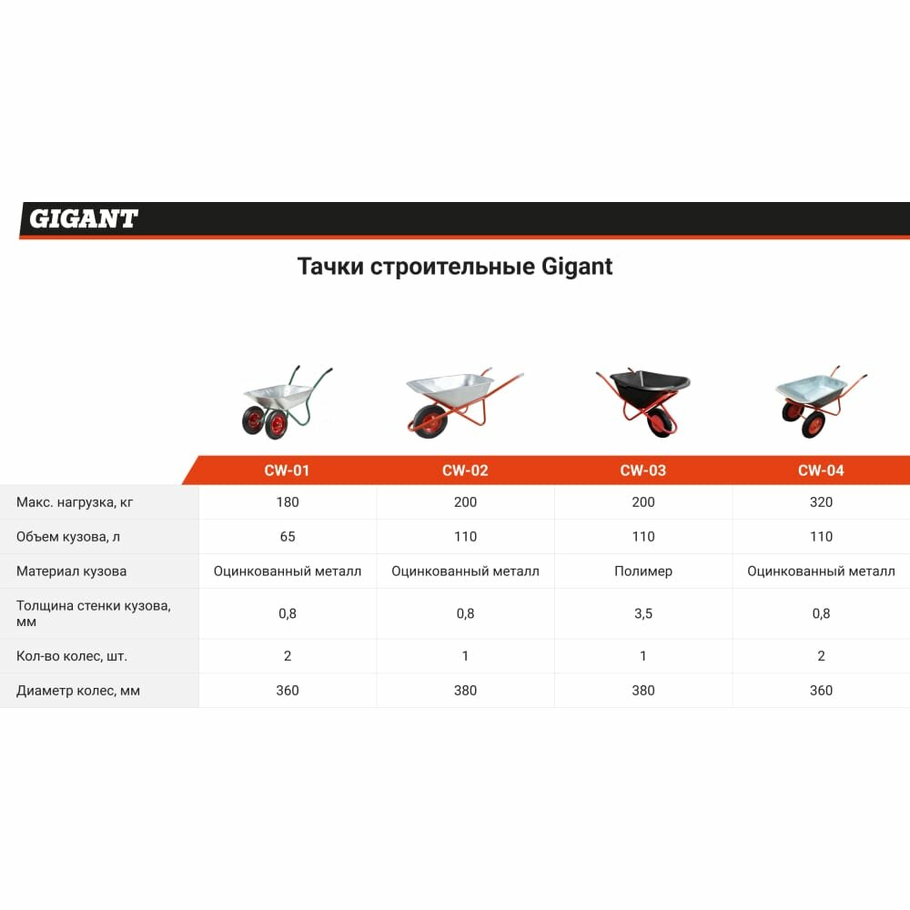 Строительная одноколесная тачка Gigant 200 кг, 110 л, CW-02 . интересное: