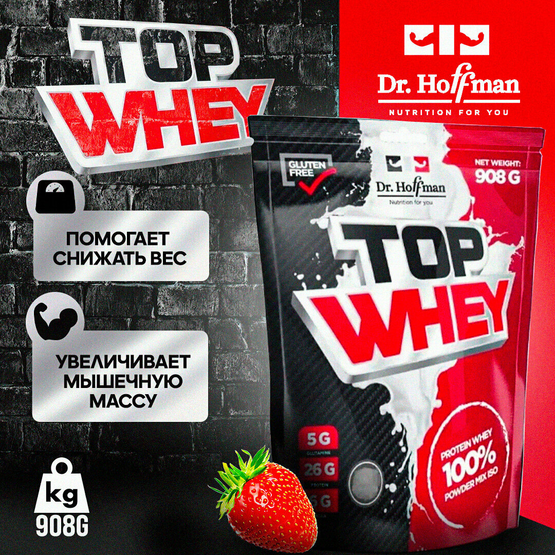 Протеин сывороточный Доктор Хоффман / клубника / Top Whey Protein Dr. Hoffman / 908 гр
