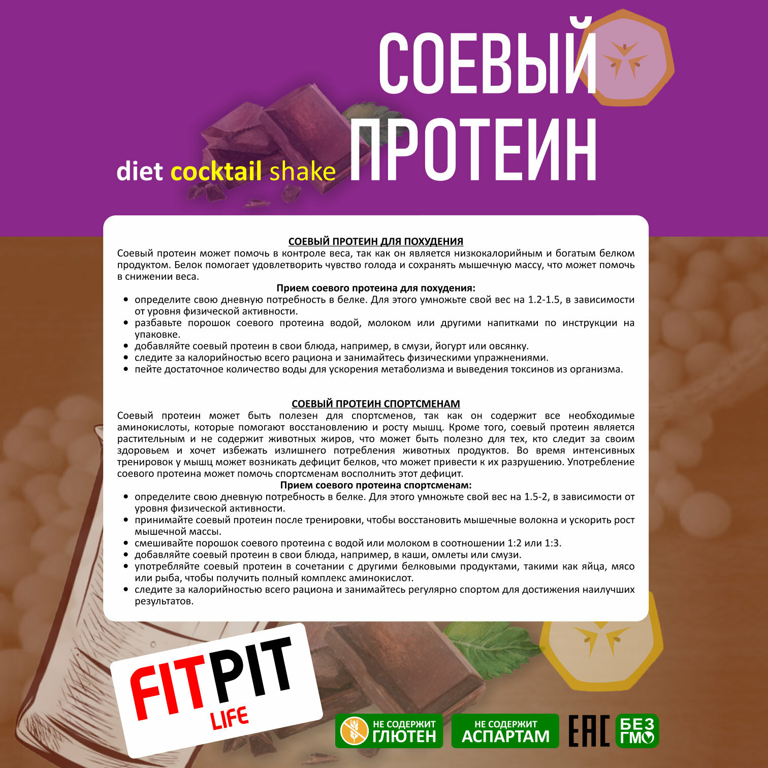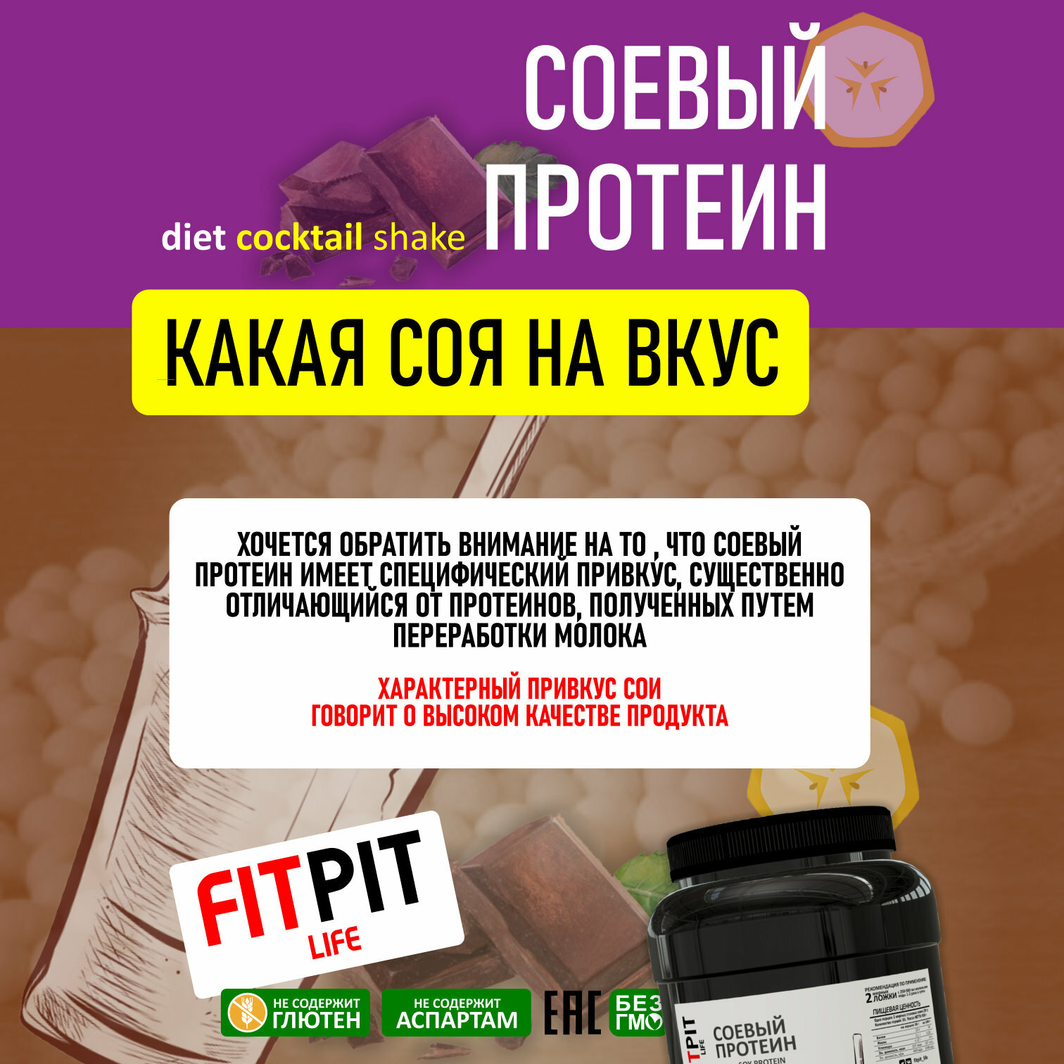 СохранитьFITPIT Соевый протеин (Настоящий) / Изолят соевого белка (без добавления других растительных белков) / 900 гр / Шоколад интересное: