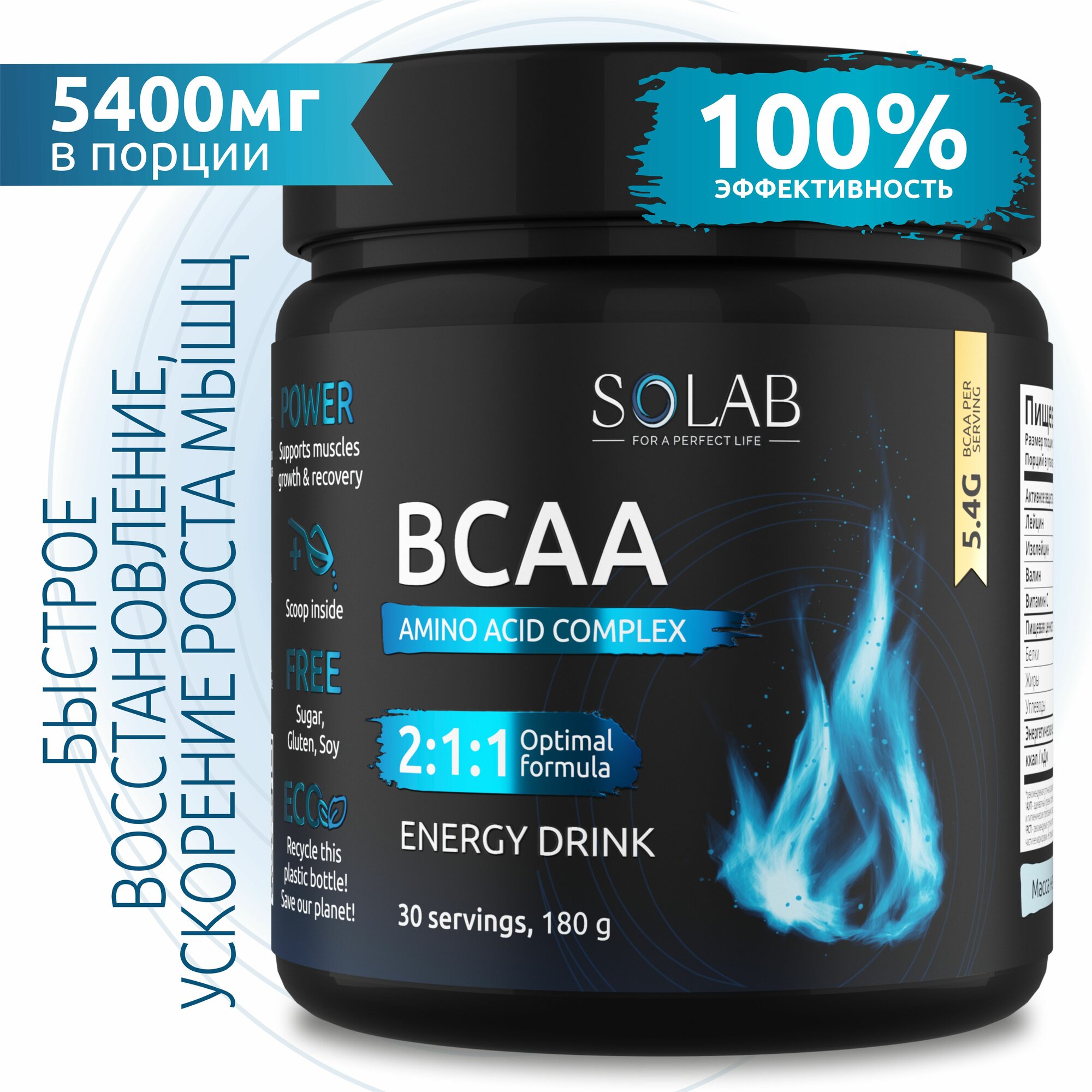 SOLAB Аминокислоты BCAA 2:1:1 порошок 180 гр, 30 порций / БЦАА, спортивное питание, спортпит для мужчин и женщин, вкус энергетик