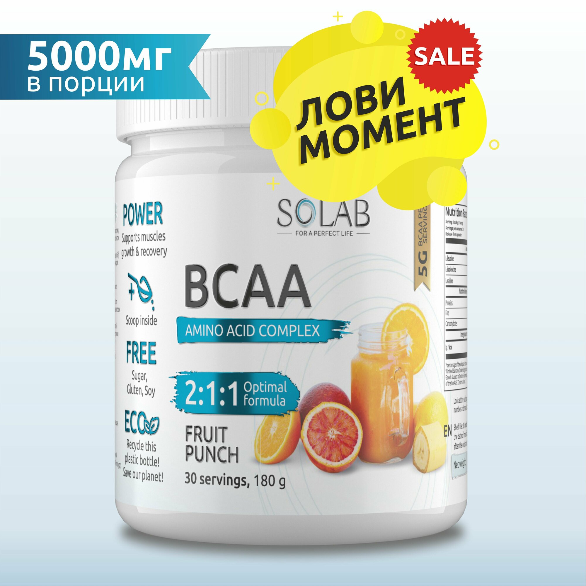 SOLAB Аминокислоты BCAA 2:1:1 порошок 180 гр, 30 порций / БЦАА, спортивное питание, спортпит для мужчин и женщин, вкус фкрутовый микс
