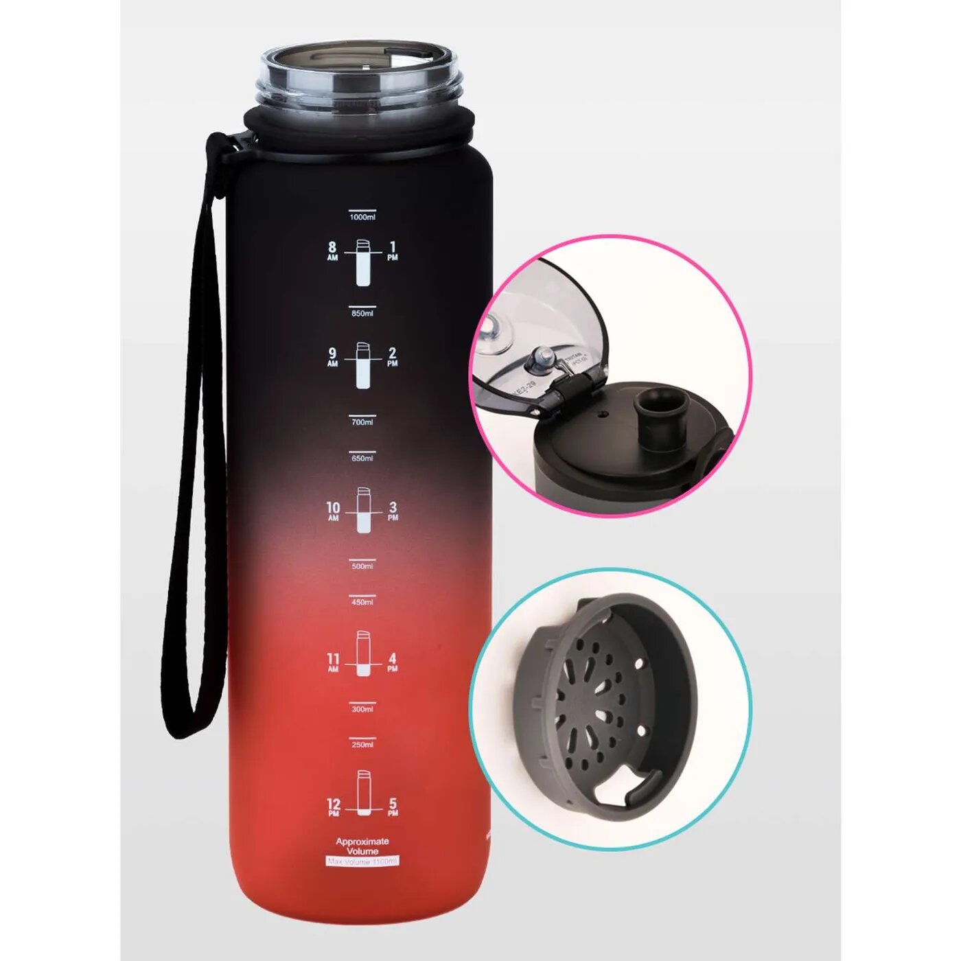 Купить Бутылка для воды спортивная Uzspace 1000 мл черно-красный
