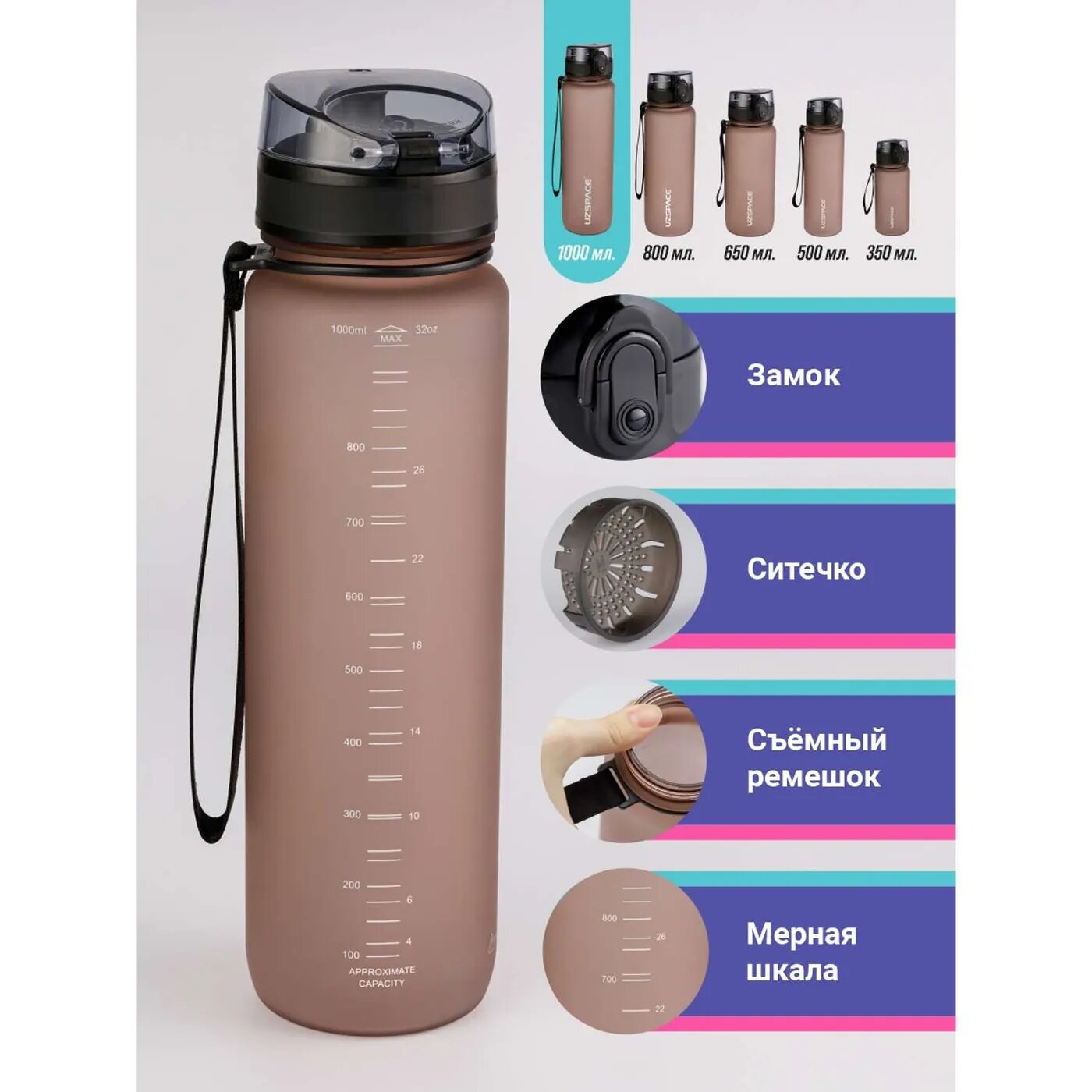 СохранитьБутылка для воды спортивная Uzspace 1000 мл кофейный интересное: