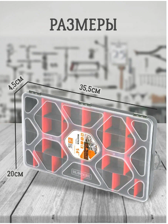 Органайзер для мелочей BLOCKER Master 5,5 красный со съёмными разделителями 140х135х42