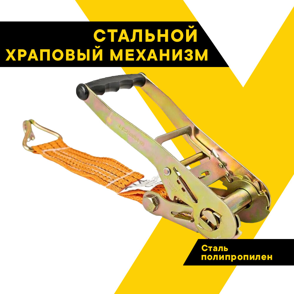 Cтяжные ремни с храповым механизмом для стяжки и крепления груза, такелажный ремень для грузчиков, длина 10м , ширина 75мм, 10/20т