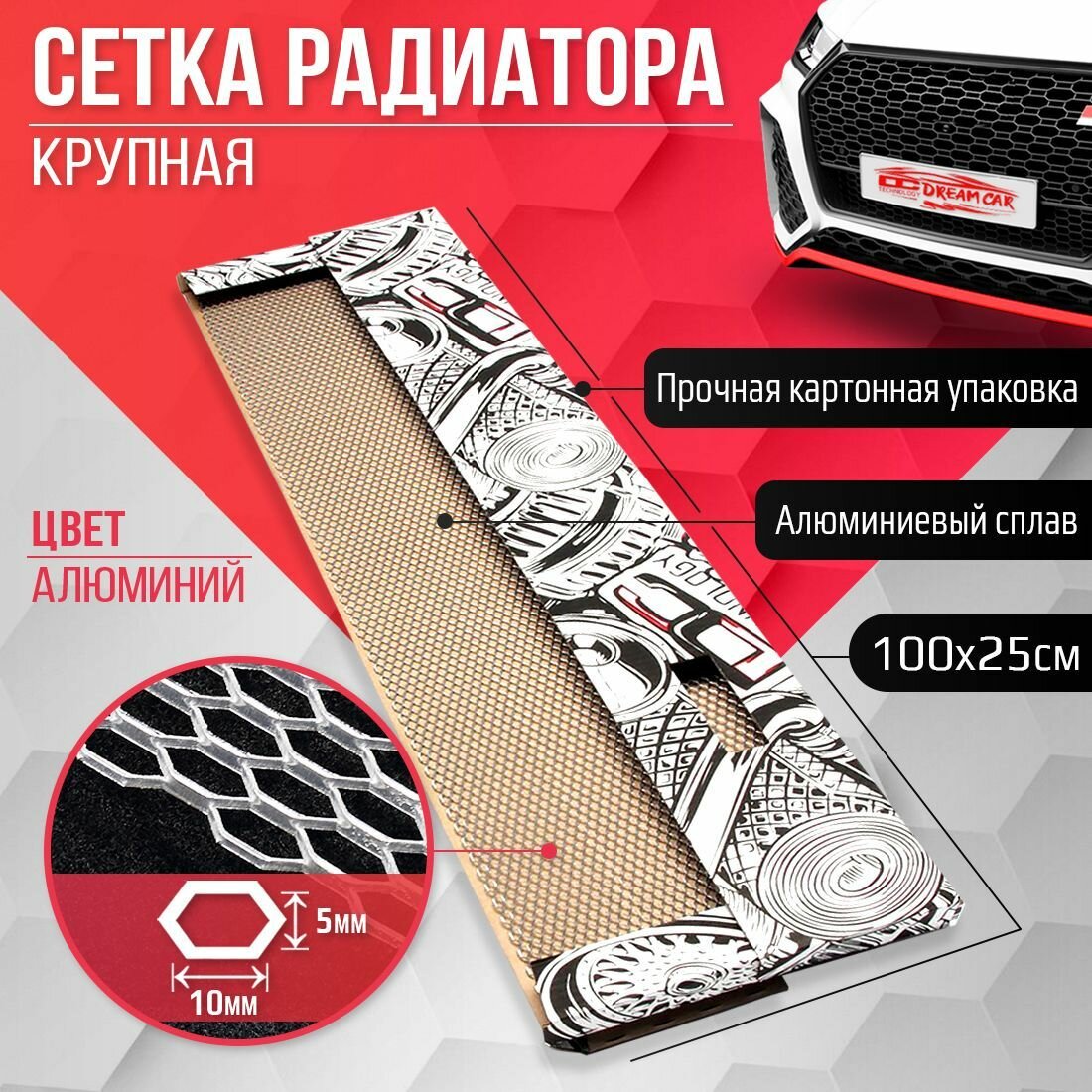 DreamCar Technology Сетка радиатора Крупная 10х5мм 25х100см алюминий интересное: