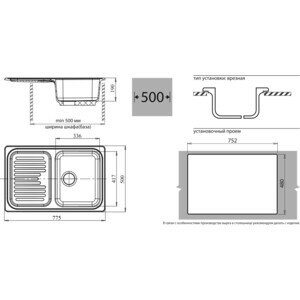 Мойка кухонная GranFest STANDART GF-S-780L чаша с крылом 775*500 мм иней, мрамор