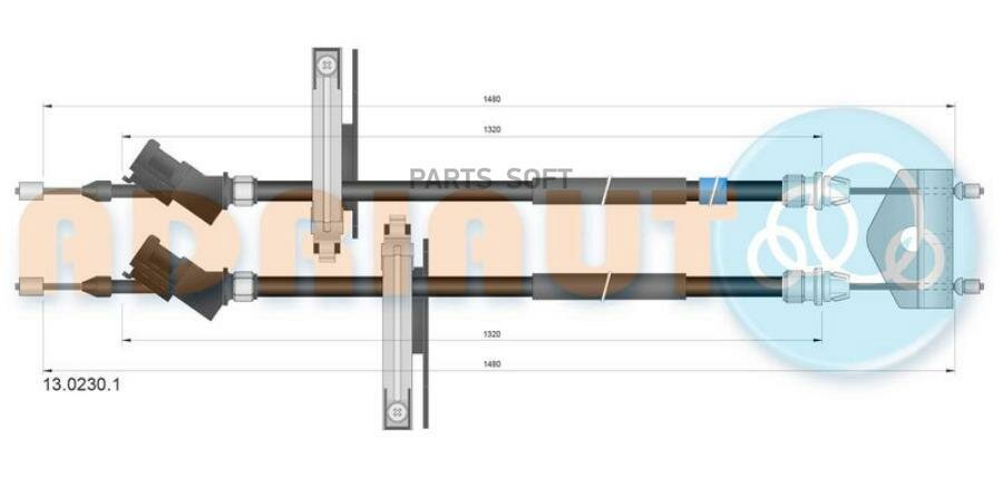 Трос ручного тормоза, 1302301 Adriauto 13.0230.1