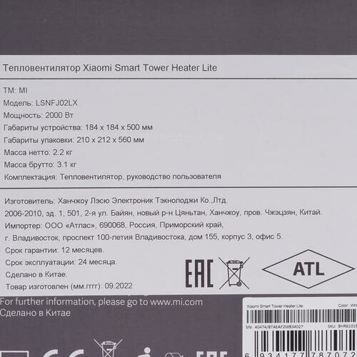 Купить Xiaomi Smart Tower Heater Lite BHR6101EU