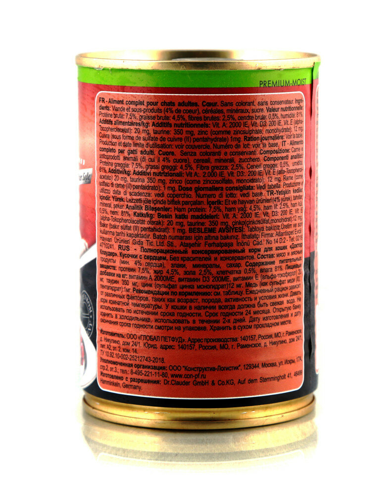 Консервы dr.clauder`s для кошек сердце premium cat food heart 415г