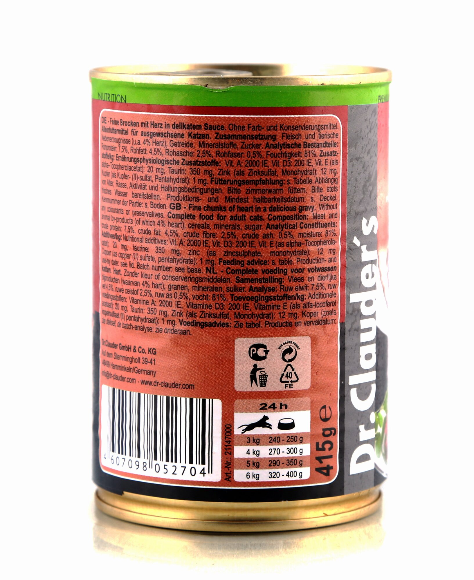Консервы для кошек "Dr. Clauder`s" "Сердце" (кусочки в соусе), 415 г x 12 шт