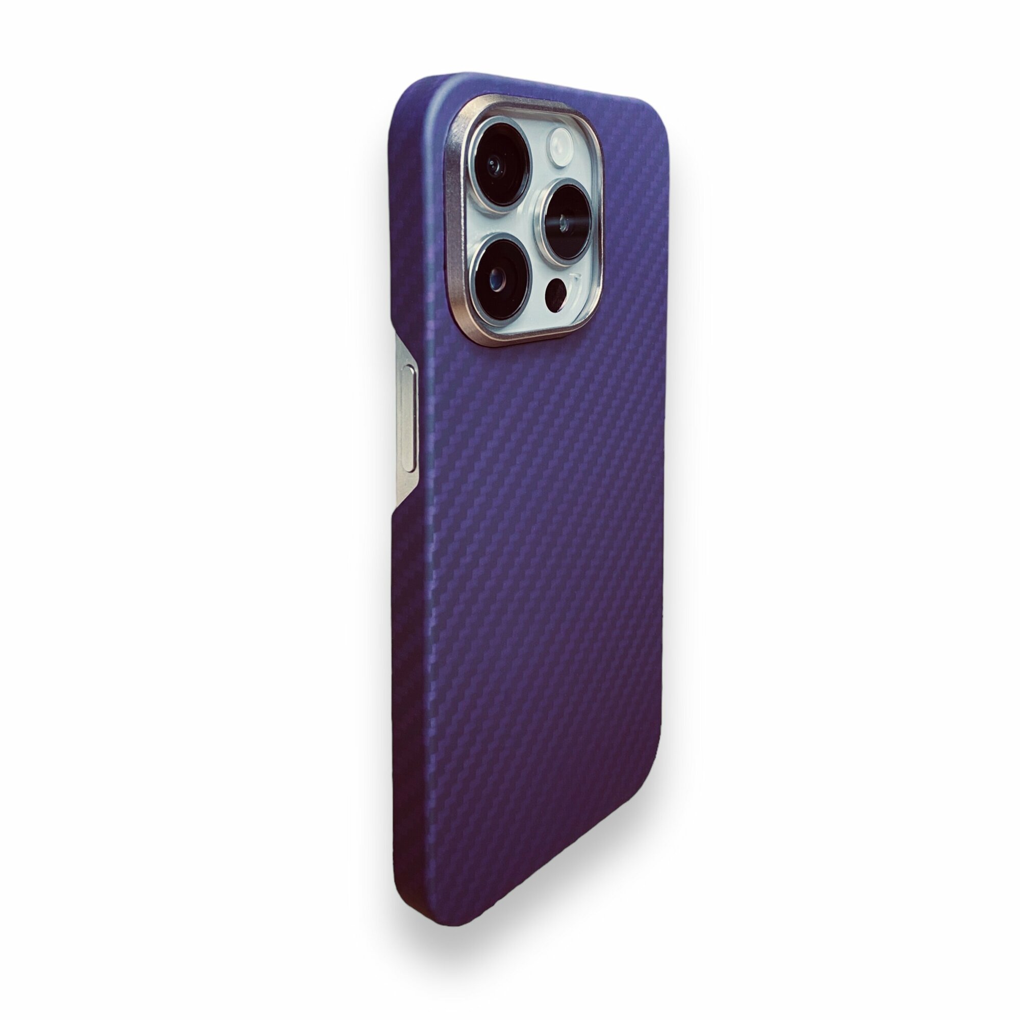 Купить Чехол карбоновый для iPhone 15 pro Max (MagSafe) Кевларовый из арамидного волокна, ультратонкий, сверхпрочный. Фиолетовый/Черный