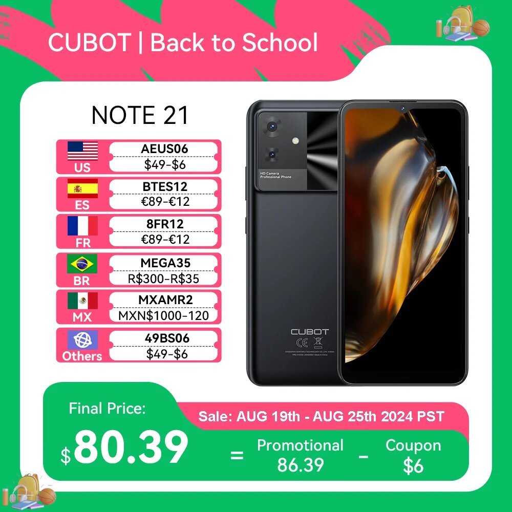 Смартфон Cubot Note 21, Android 13, 12 ГБ ОЗУ (6 ГБ + 6 ГБ расширенна), 128 ГБ ПЗУ(поддержка TF-карты объемом до 1ТБ), экран 6,56 дюйма, частота 90 Гц, 6 ГБ, 128 ГБ, Cubot, Note 21, Смартфон, Черный, 6ГБ, 128ГБ, global, новый
