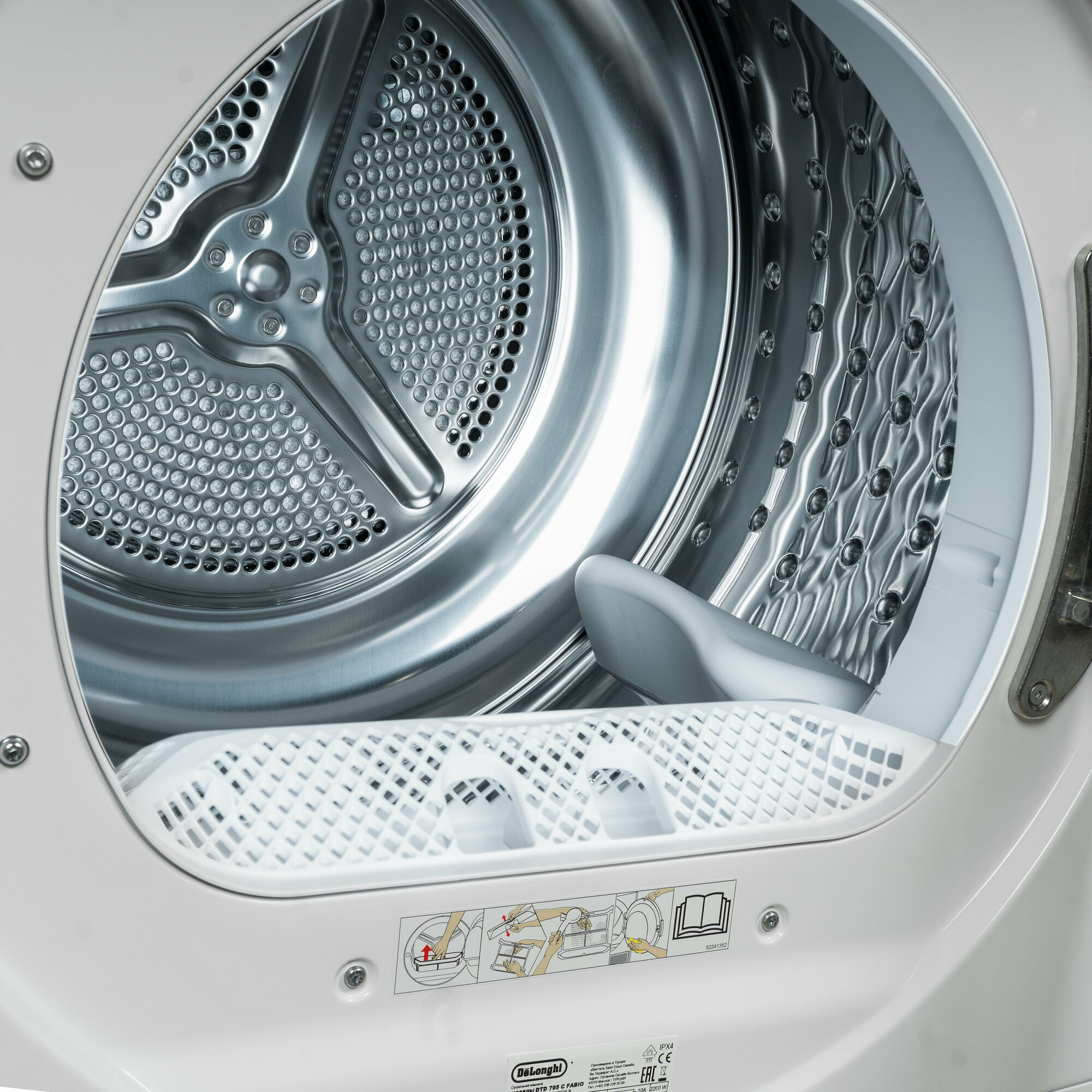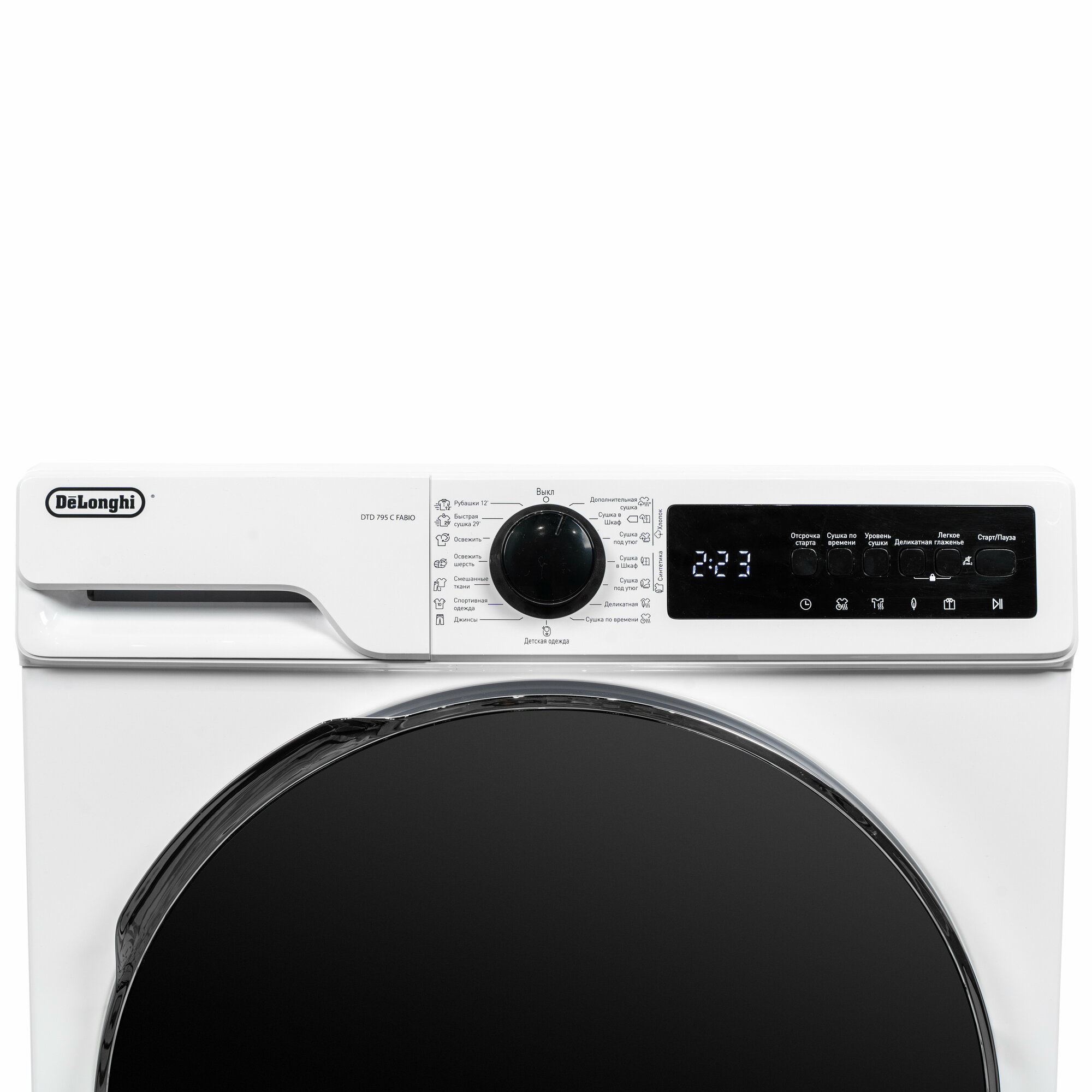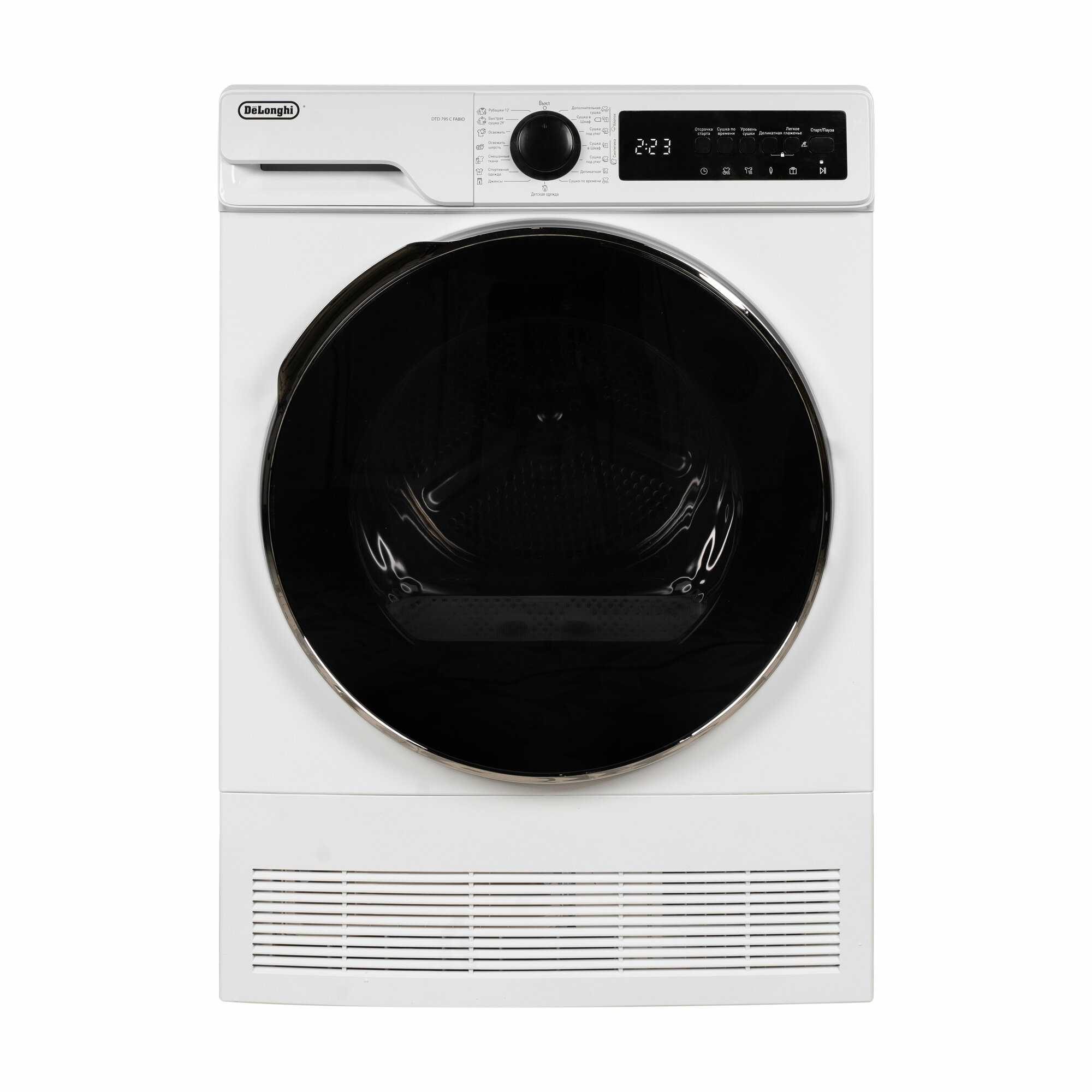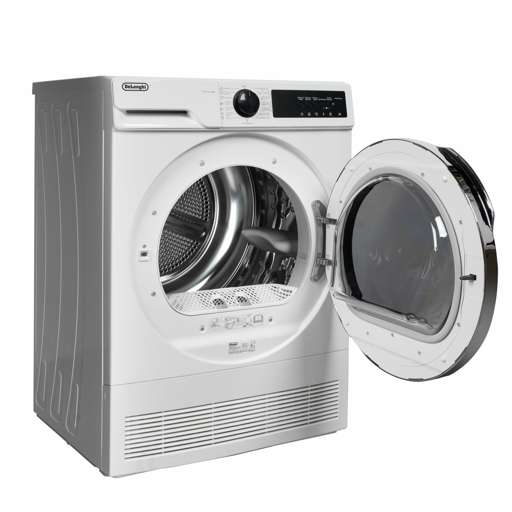 Сушильная машина DeLonghi DTD 795 C FABIO отдельностоящая, 7 кг, белая, 3 уровня сушки, подсветка барабана интересное: