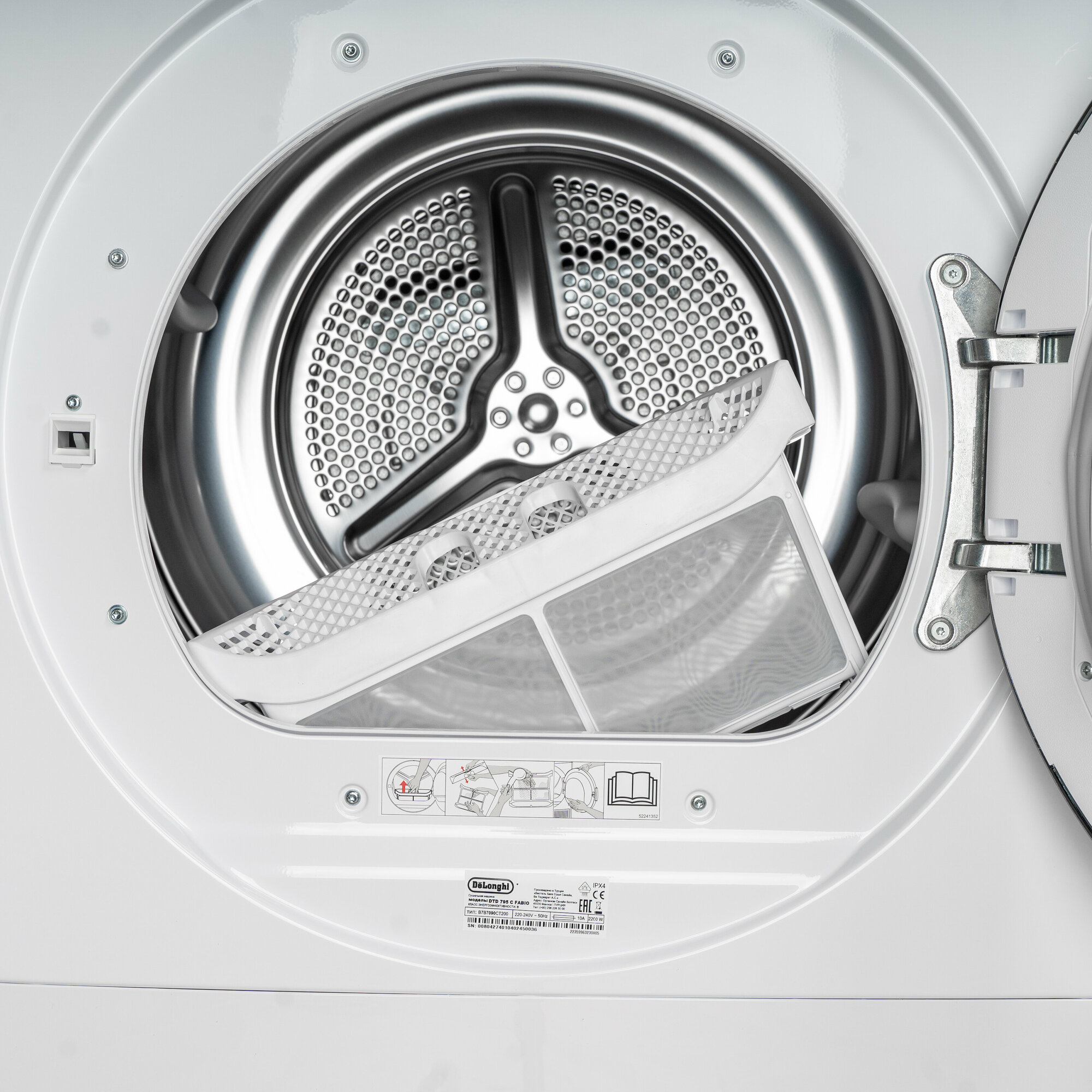 Купить Сушильная машина DeLonghi DTD 795 C FABIO отдельностоящая, 7 кг, белая, 3 уровня сушки, подсветка барабана