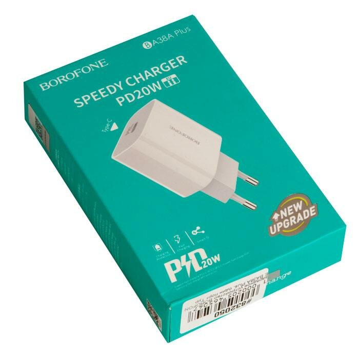 Блок питания (сетевой адаптер) BOROFONE BA38A Plus, один порт Type-C, PD20W, белый