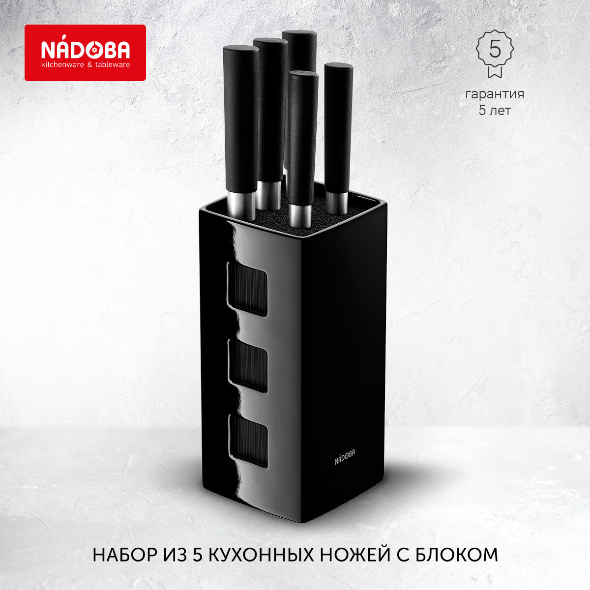 Набор из 5 кухонных ножей с универсальным керамическим блоком, NADOBA, серия KEIKO, арт: 722920