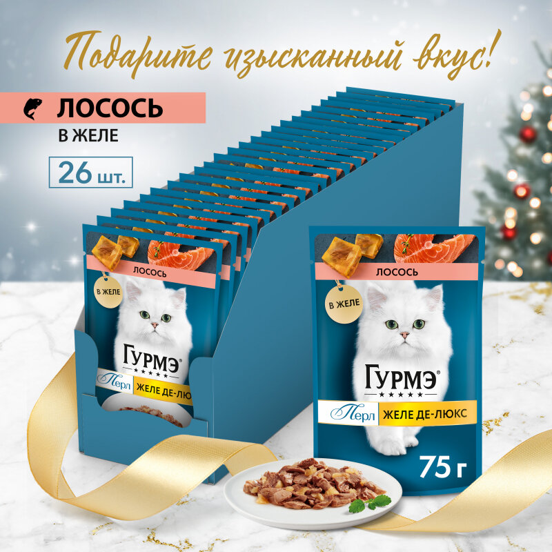 Купить Гурмэ перл желе де-люкс для взрослых кошек с лососем в желе (75 гр х 26 шт)