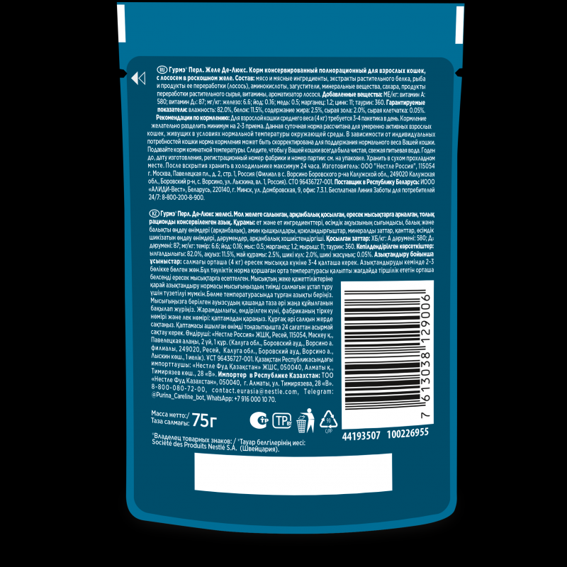 Корм влажный для взрослых кошек гурмэ Желе Де-Люкс с лососем, 75г
