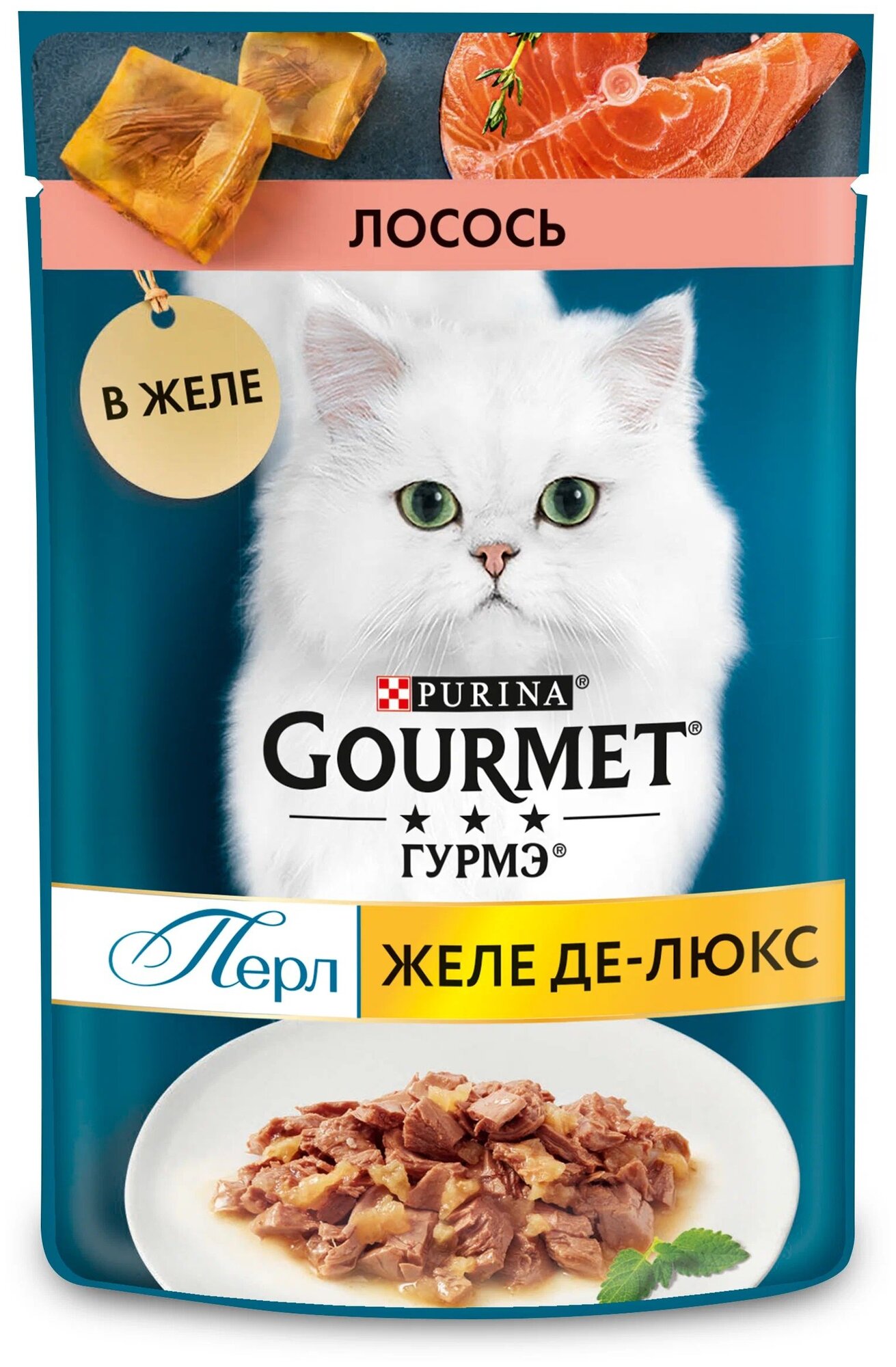 Гурмэ Перл Желе Де-Люкс 75 г влажный корм для кошек, с лососем в роскошном желе х26 штук