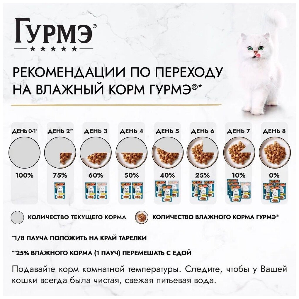 | Дозировка | для взрослой кошки среднего веса (4 кг) требуется 4-5 пакетиков в день, кормление желательно разделить минимум на 2-3 приема |