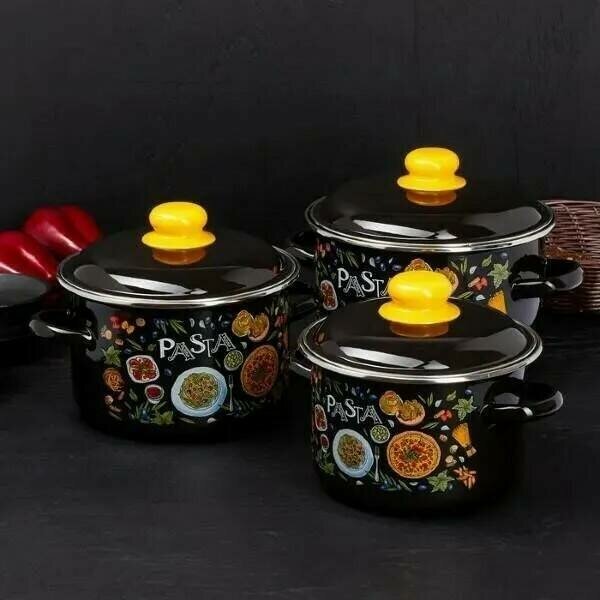 Набор кастрюль Стальэмаль, Pasta, 1КВ021М, 2л, 3л, 4л, black интересное:
