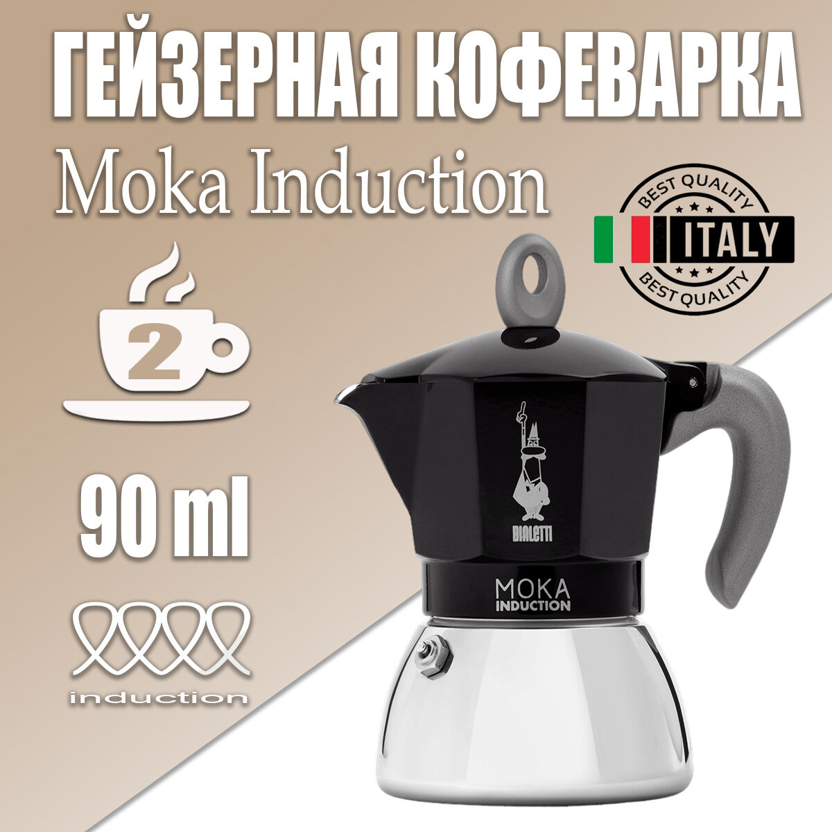 Купить Кофеварка гейзерная Bialetti Moka Induction на 2 чашки, черная
