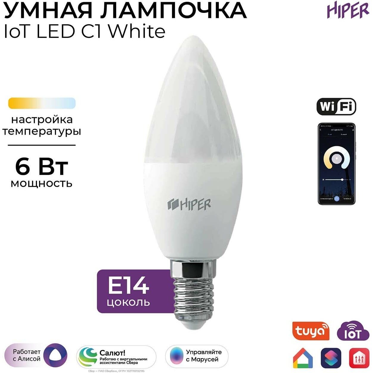 Ниже Вы можете прочитать отзывы на Умная LED лампочка Wi-Fi HIPER IoT C1 White, WiFi 2.4 ГГц, 802.11 b/g/n, E14, AC 220-250В, 2700K-6500K, A+, 520 лм, Android 5.1; iOS 10, ознакомится с подробными характеристиками, посмотреть интересные обзоры и фотографии на Умная LED лампочка Wi-Fi HIPER IoT C1 White, WiFi 2.4 ГГц, 802.11 b/g/n, E14, AC 220-250В, 2700K-6500K, A+, 520 лм, Android 5.1; iOS 10.