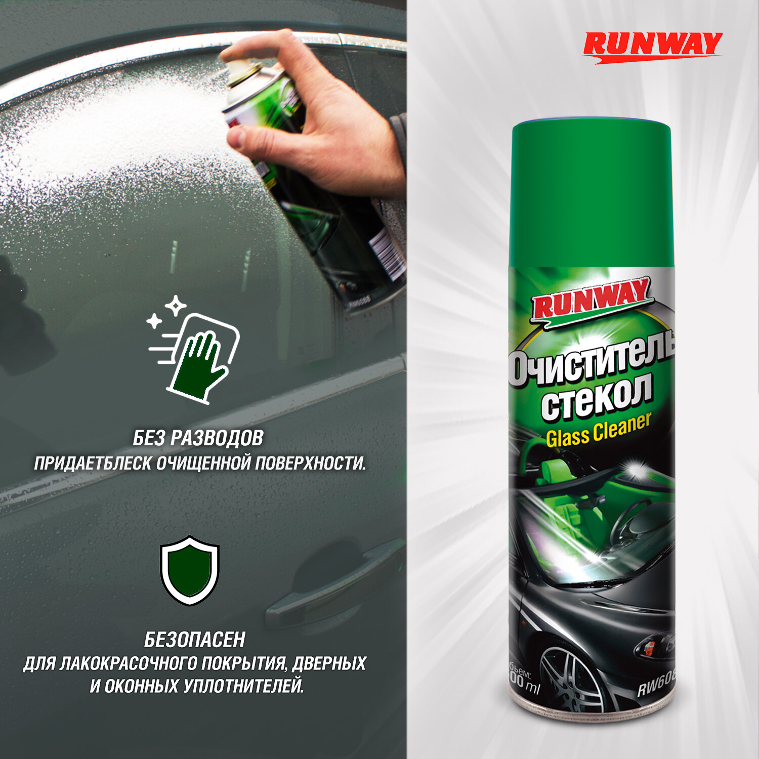 Очиститель стекол 500мл аэрозоль RUNWAY