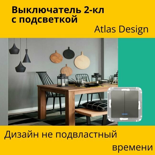 СохранитьВыключатель Systeme Electric Atlas Design 2-клавишный с подсветкой, Сталь ATN000953 - 5 шт. интересное: